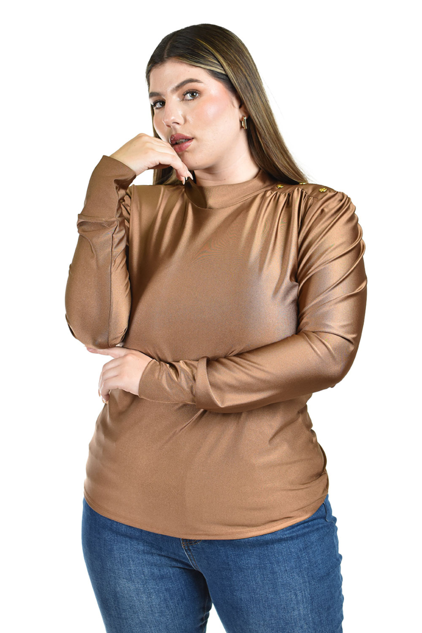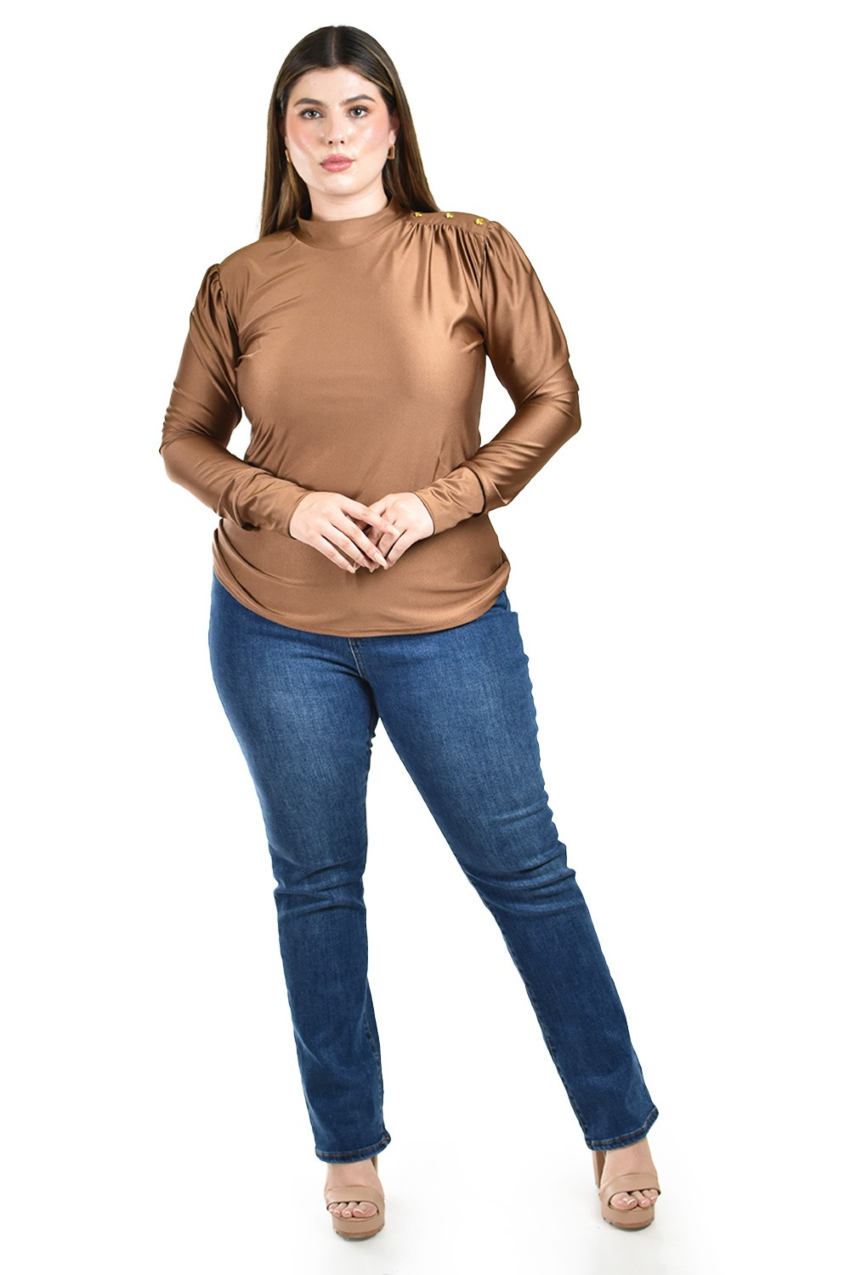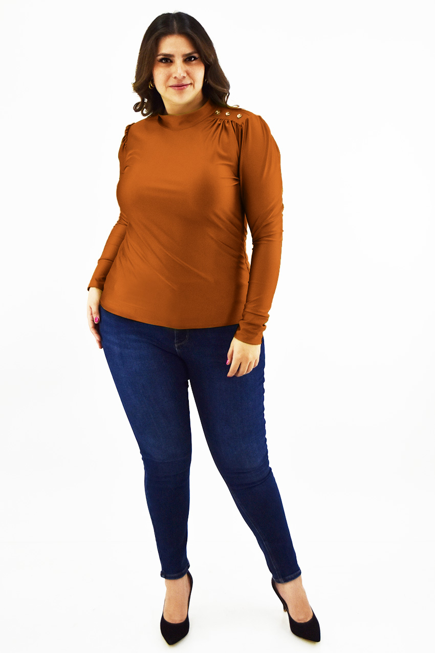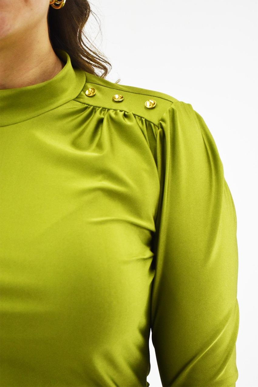 - Botones decorativos en el hombro para un toque distintivo.