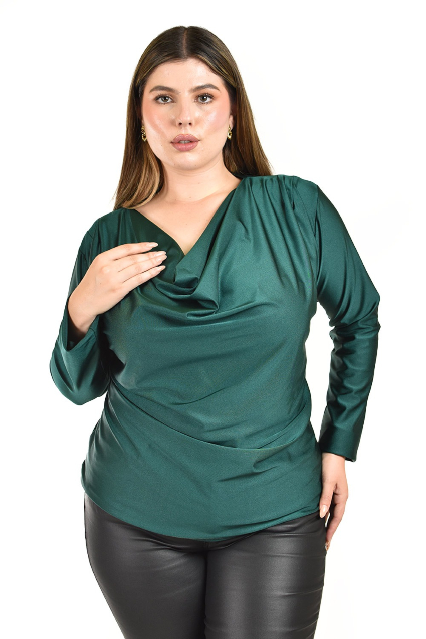 - Escote drapeado que aporta movimiento y estilo