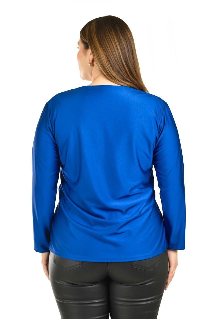 Blusa elegante de satín Roman fashion /Tallas Extras, 1787 (Negro)