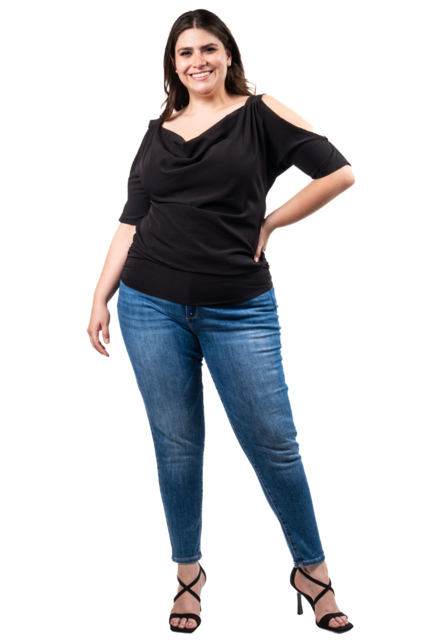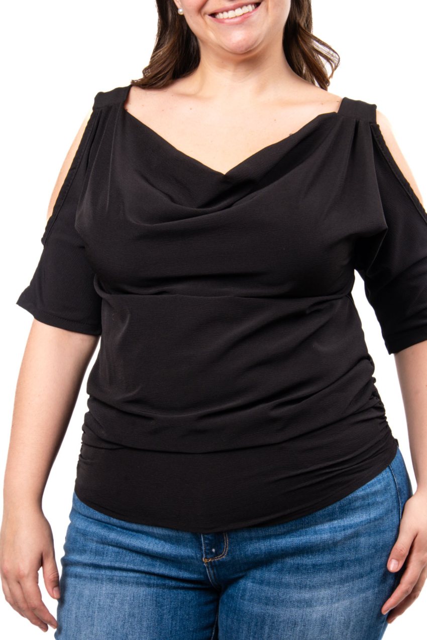 Blusa escote drapeado Roman Fashion /Tallas Extras, 1881 (Negro)