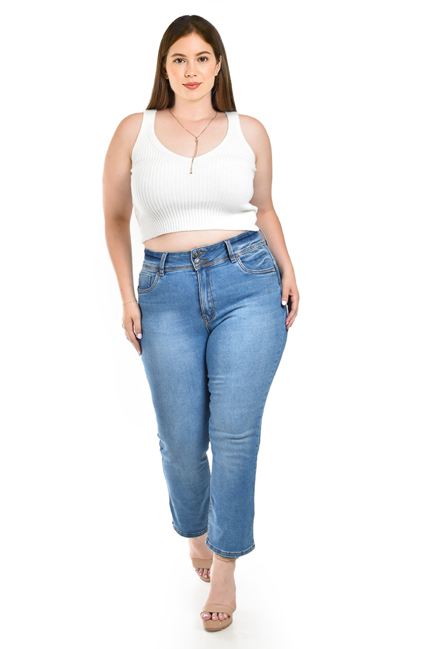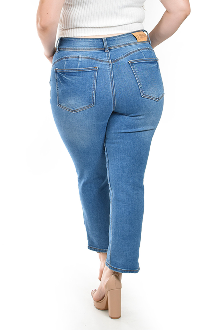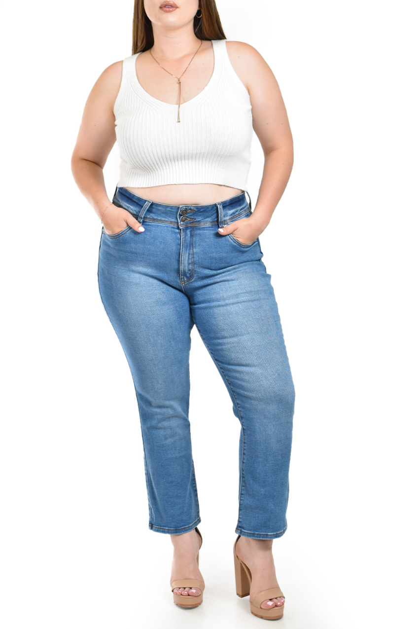 Jeans corte recto, son la elección perfecta para un look moderno y estilizado. Diseñados con una cintura alta, estos jeans ofrecen un ajuste favorecedor que realza la figura. El corte recto alarga visualmente las piernas, mientras que el denim de alta calidad garantiza comodidad y durabilidad. Estos jeans son versátiles y adecuados para cualquier ocasión, desde una salida casual hasta un evento más formal. El fit viene a la medida, por lo que se recomienda solicitarlo a su talla; la modelo usa talla 38 y mide 1.70. Corte: Curvy, Plus Size, Talla Extra. Composición: 93% algodón, 5% poliéster, 2% elastano.