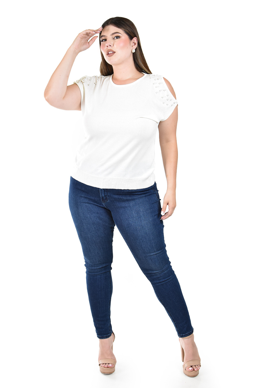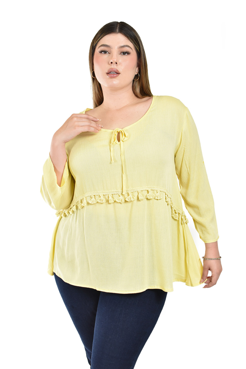 - Blusa con detalle de olan Roman Fashion / Juvenil, 8049 (Beige)$599.00 $799.00