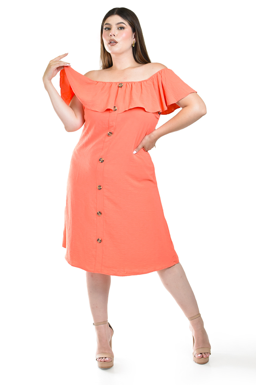 - Blusa con detalle de olan Roman Fashion / Juvenil, 8049 (Coral)$599.00 $799.00