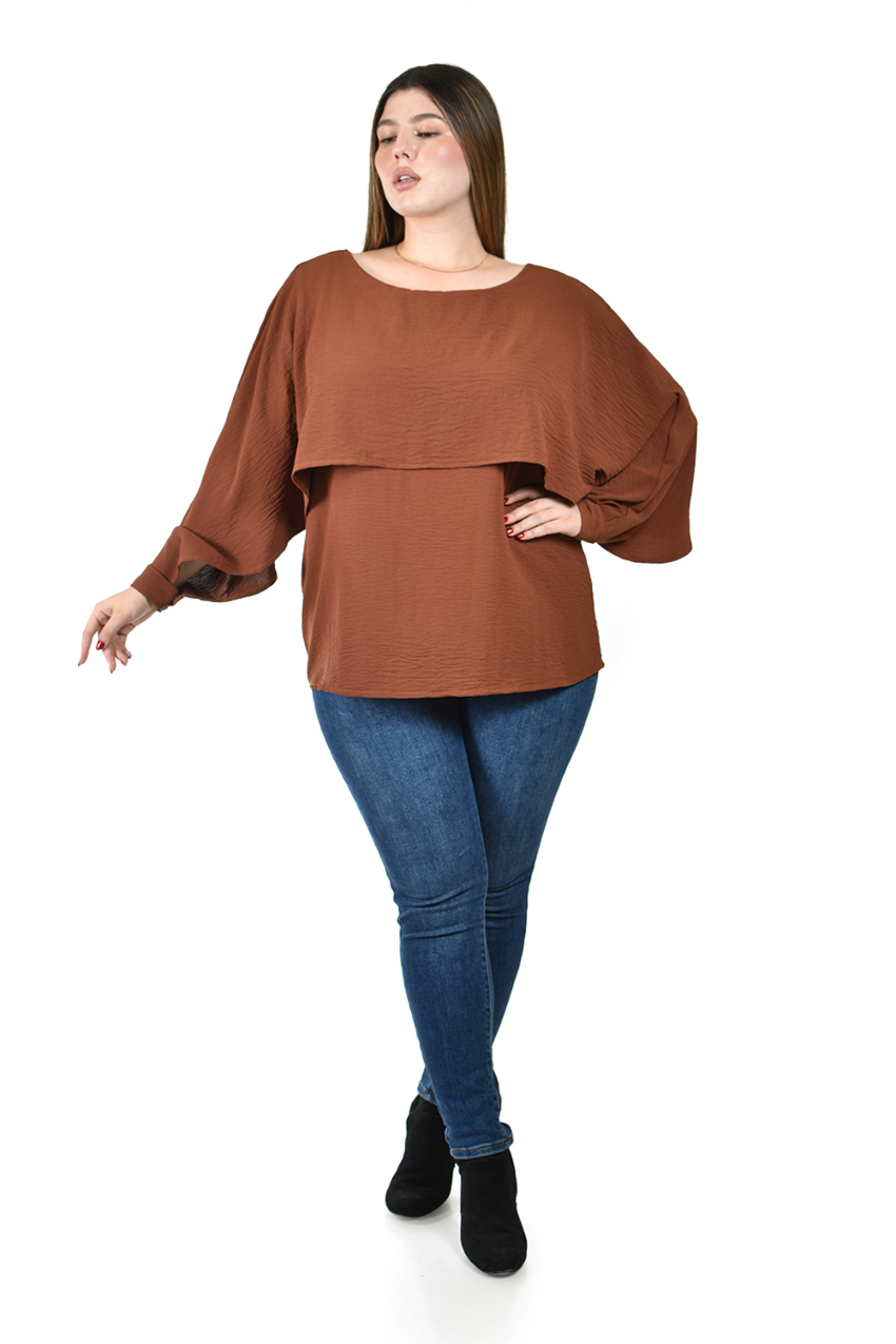 3. Blusa diseño tipo capa Roman Fashion /Tallas Extras, 1656 (Cafe)