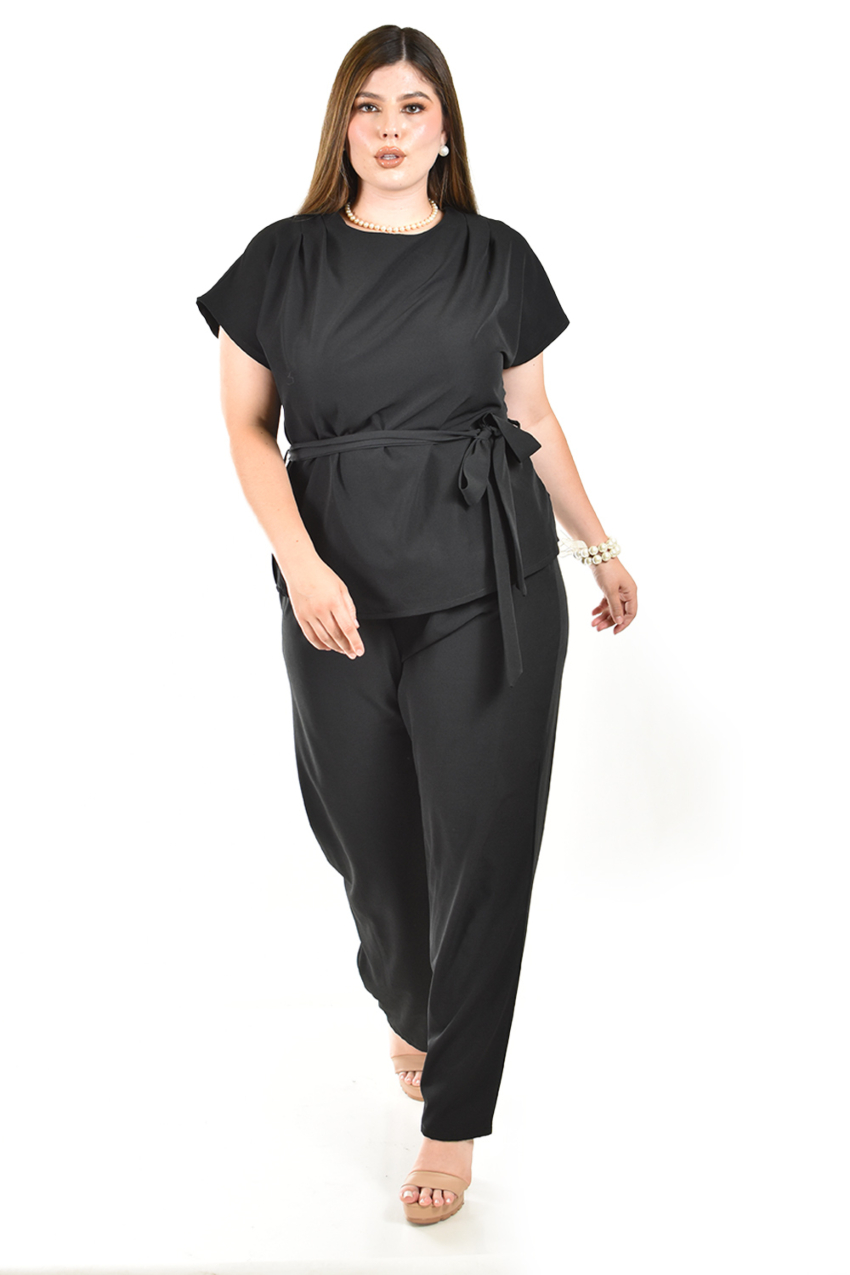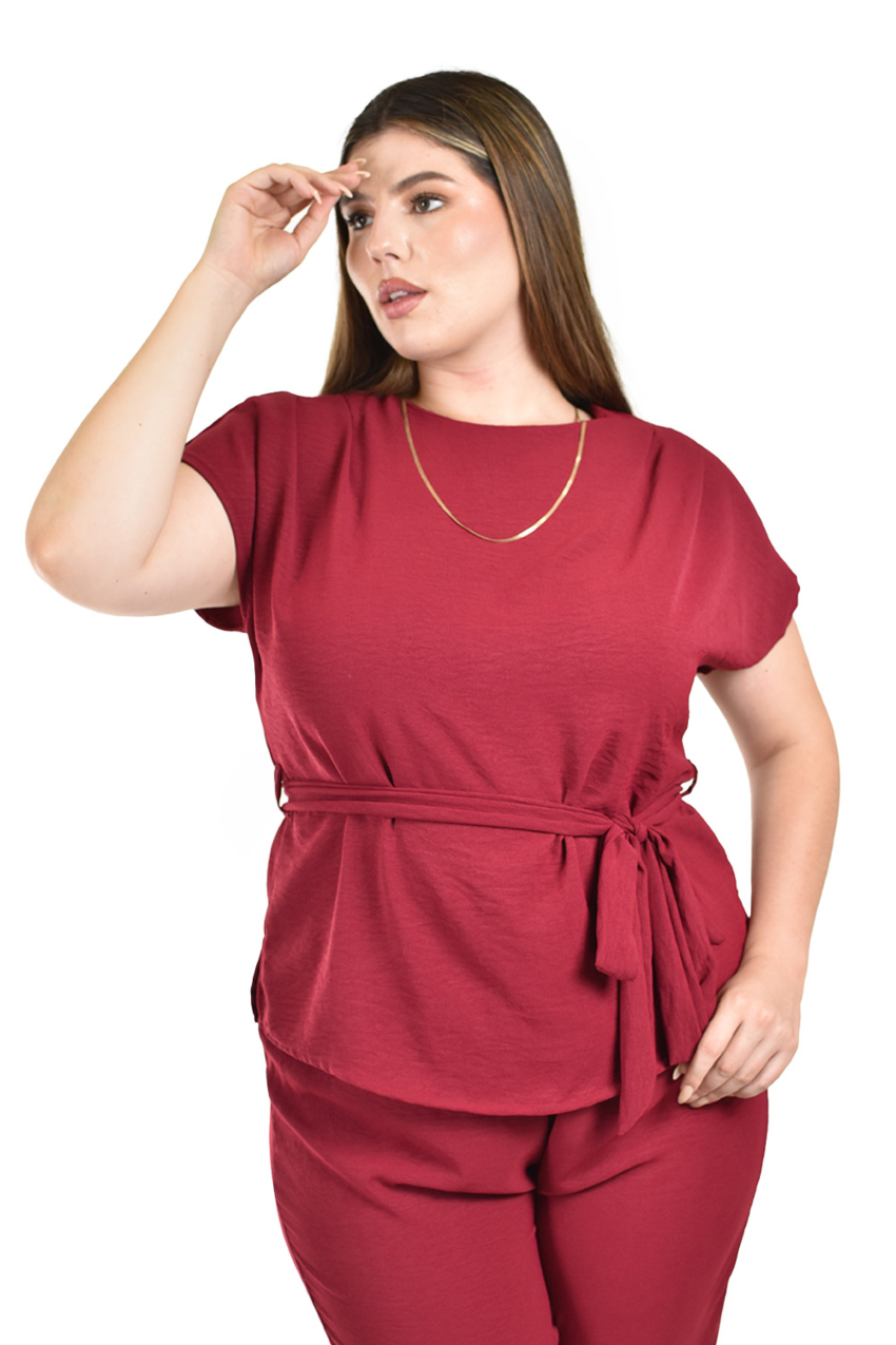 - Blusa de manga corta con lazo en cintura