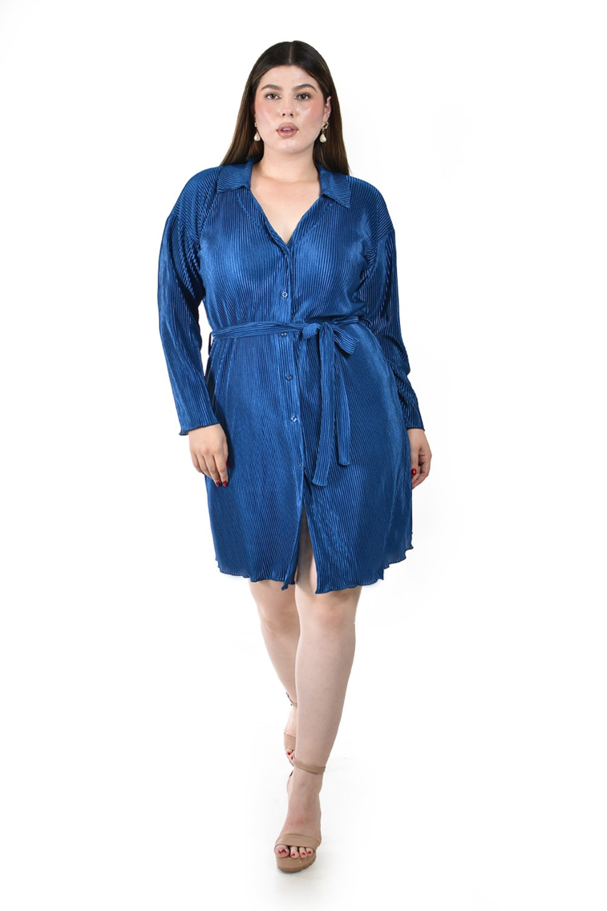 Vestido de satín plisado Roman Fashion /Tallas Extras, 12248 (Azul petroleo)