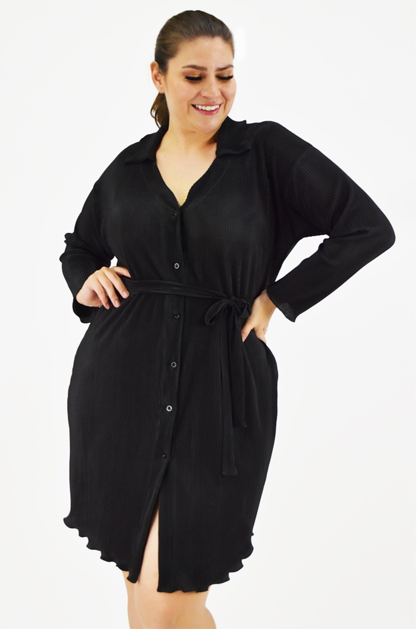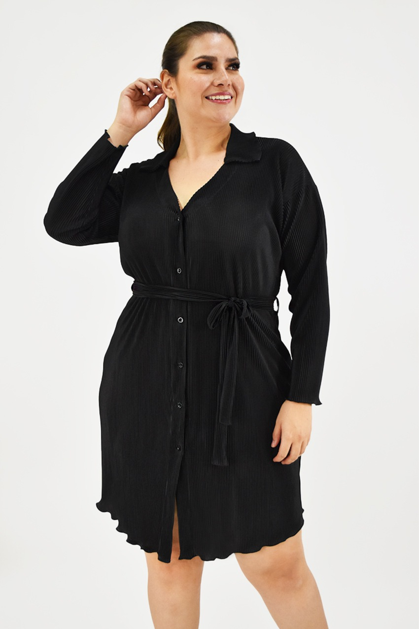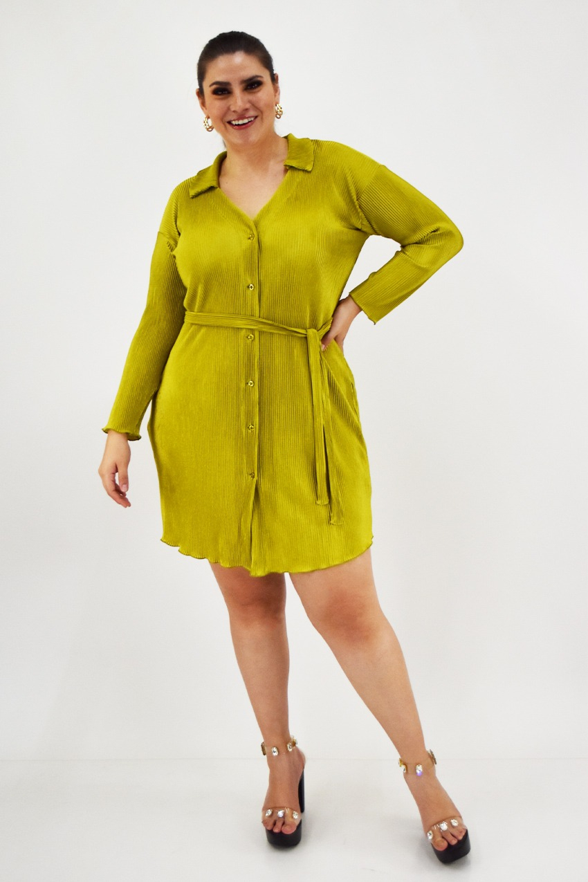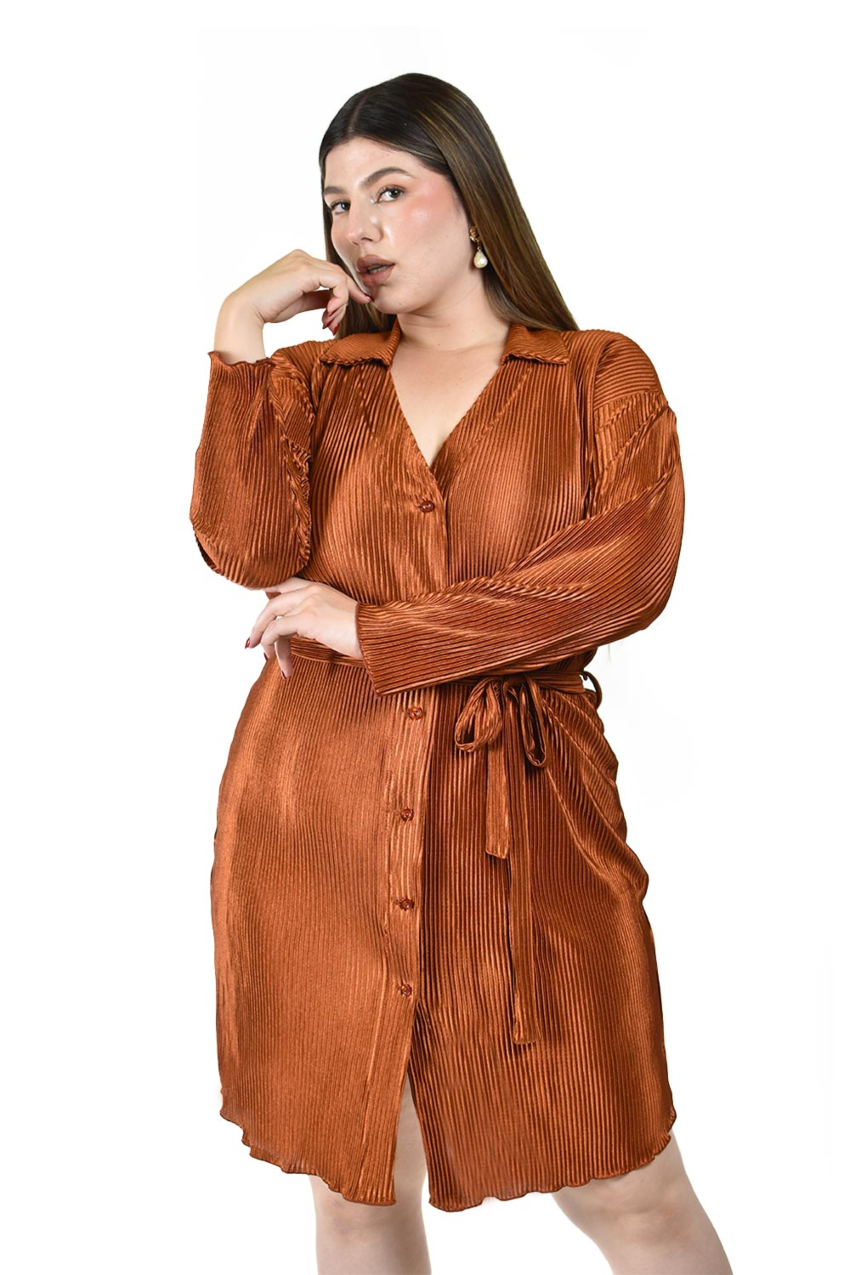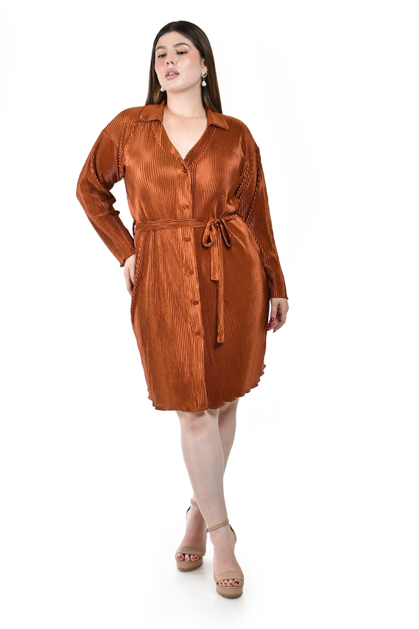 Este vestido tipo camisero con acabado satinado es la elección perfecta para destacar con estilo.